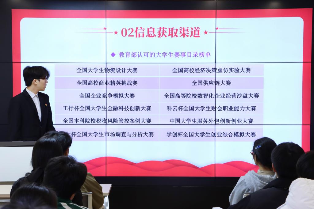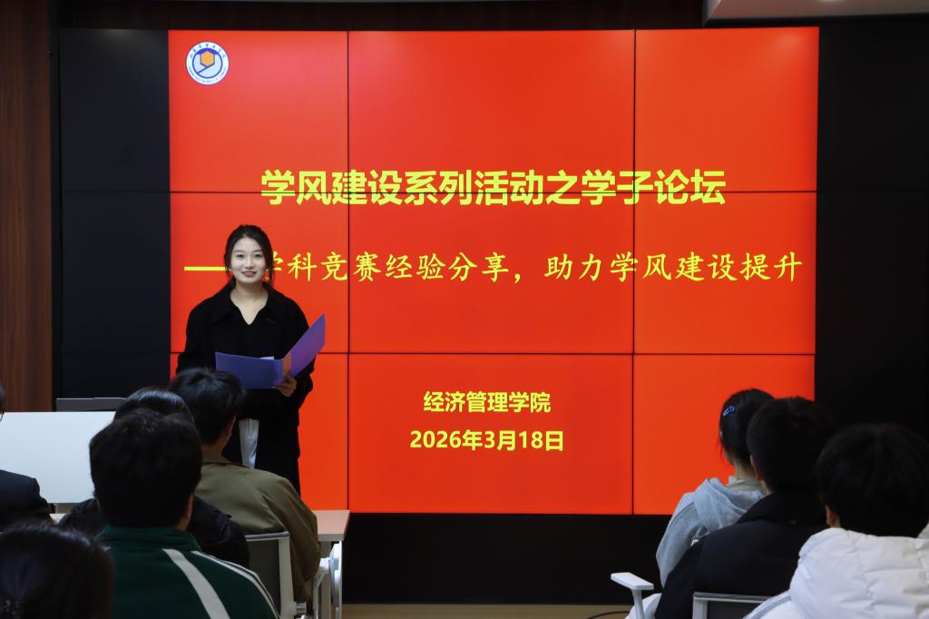为深化学院学风建设,厚植学术沃土,提升学生学科竞赛参与能力与综合素养,3月18日下午,经济管理学院在大学生社团发展与服务中心社团梦立方E馆举办了2026年学风建设系列活动之学子论坛。本次论坛以“学科竞赛经验分享,助力学风建设提升”为主题,特邀学科竞赛优秀学子分享实战经验,2025级全体班级学习委员齐聚现场、共学共进。