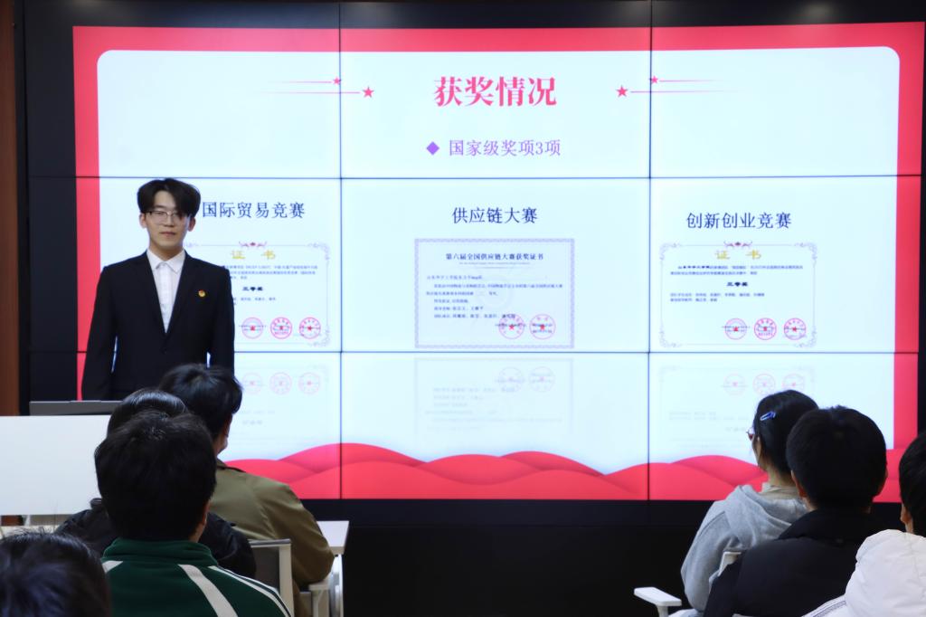 本次论坛特邀经济管理学院本科工业2302班马嘉康、本科物流2303班潘庆超两位学科竞赛获奖学子担任主讲嘉宾。两位嘉宾立足自身参赛经历,均从学业规划与竞赛选题的衔接、备赛阶段的方法技巧、参赛过程中的团队协作策略等多个维度,进行了系统且详实的经验分享,将竞赛筹备、实战比拼中的重难点与应对技巧倾囊相授,为在场同学提供了兼具实用性与指导性的竞赛思路。互动交流环节中,学习委员们结合班级同学在学科竞赛参与中遇到的困惑积极提问,嘉宾有针对性地逐一解答,现场交流氛围热烈,干货满满、收效显著!