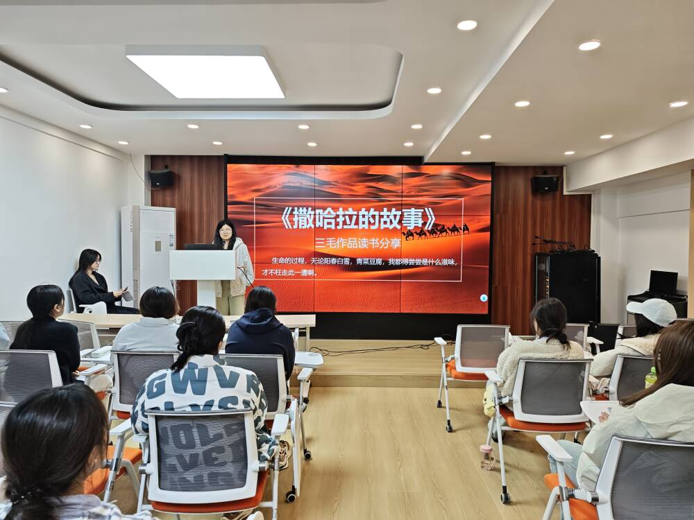 在精彩纷呈的书籍分享环节,三位同学依次登台,带着自己钟爱的经典作品,为大家带来了别具一格的阅读感悟。王姿雅同学率先带来《繁花》的深度分享,王寒香同学以《撒哈拉的故事》为引,将大家带入三毛笔下那片辽阔又浪漫的沙漠世界。陈若童同学带来经典著作《平凡的世界》分享,真挚的分享引发了在场同学的强烈共鸣,让大家深刻体会到平凡生活里蕴藏的不凡力量。