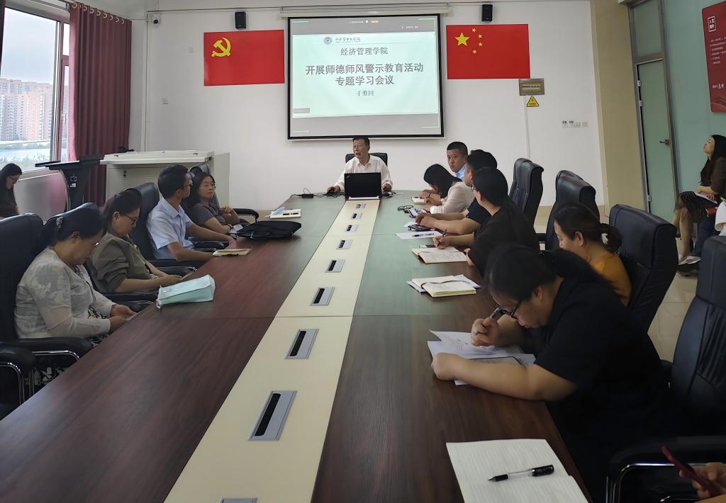 9月29日,我院召开师德师风警示教育活动专题学习动员会议,专题部署师德师风建设工作。戴明、范世伟、王钢、李娟及各科室副科级以上干部参加会议,院长于维同主持会议并作动员讲话,切实将学校师德师风建设要求转化为学院具体行动。