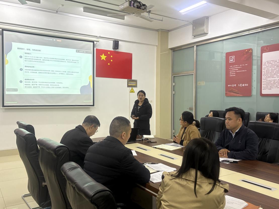 会上,辅导员代表刘庆连、汪莹欣就近期发生的学生突发晕厥、遭遇网络诈骗两个典型案例,从事件发现、预案启动、校家联动、情绪安抚、跟踪预防五个方面分别进行了复盘。学生管理科科长就学校《学生突发事件应急处置预案》《安全管理值班制度》等文件进行宣贯学习,明晰了部门职责,细化了流程规范,推动形成信息畅通、响应迅速、处置有力的工作闭环,提升协同响应能力。